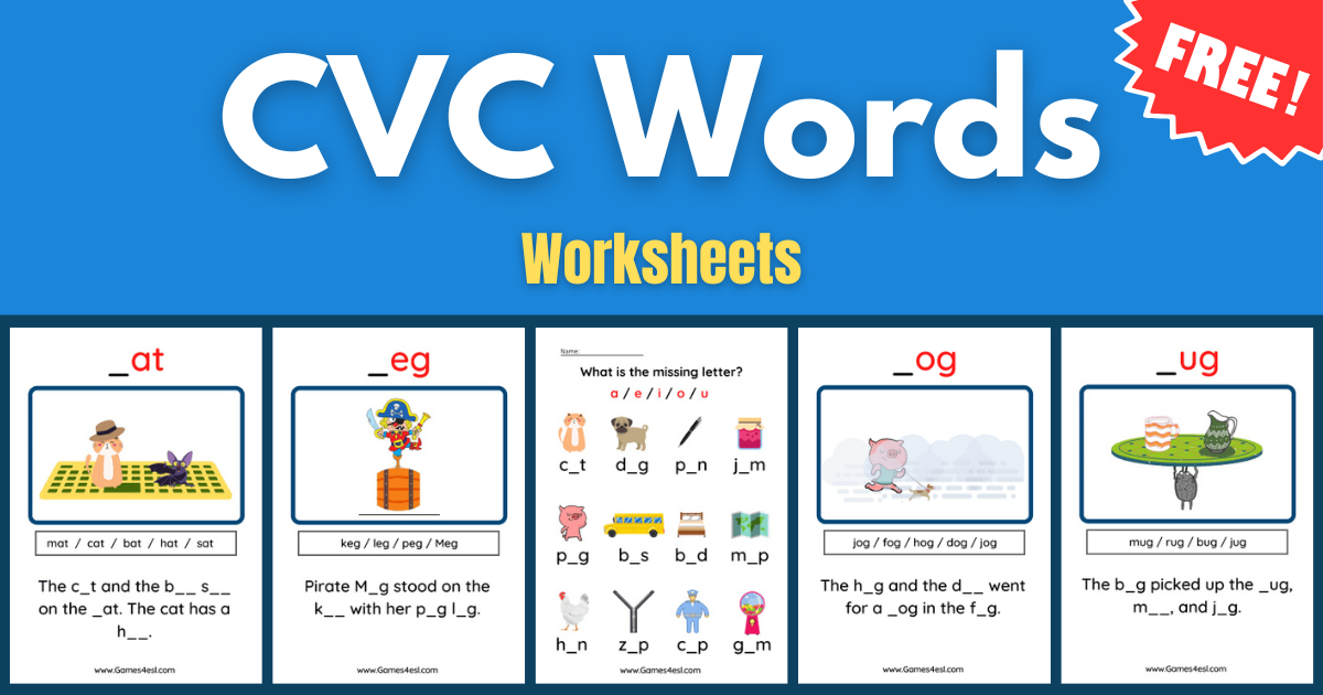 These CVC worksheets are great for English lessons teaching CVC words and the short vowel sounds for letters a, e, i, o, and u. All contain colorful images and simple tasks, making them ideal for young learners who are learning to read cvc words for the first time. Download the worksheets below, and check the bottom of the page for a fun activity you can use together with these worksheets.